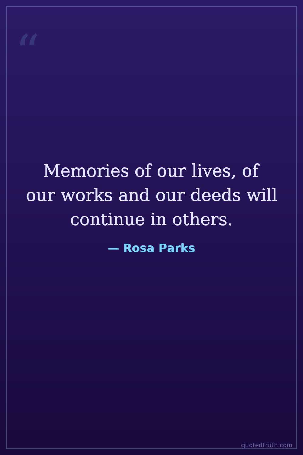 Memories of our lives, of our works and our deeds will continue in others.