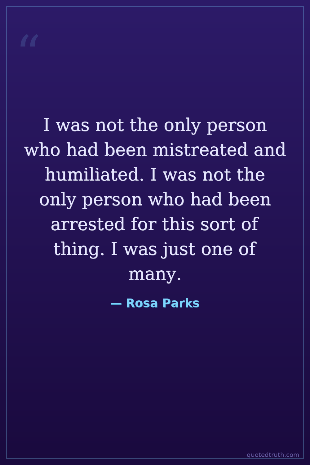 I was not the only person who had been mistreated and humiliated. I was not the only person who had been arrested for this sort of thing. I was just one of many.