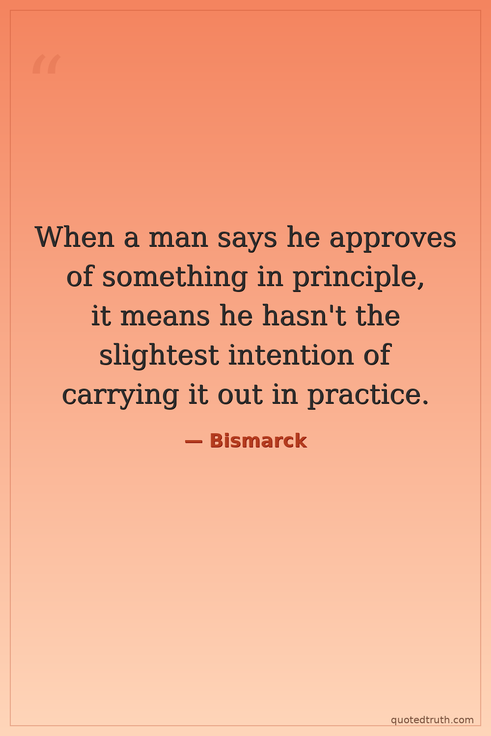 When a man says he approves of something in principle, it means he hasn't the slightest intention of carrying it out in practice.