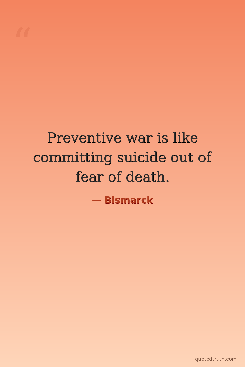 Preventive war is like committing suicide out of fear of death.