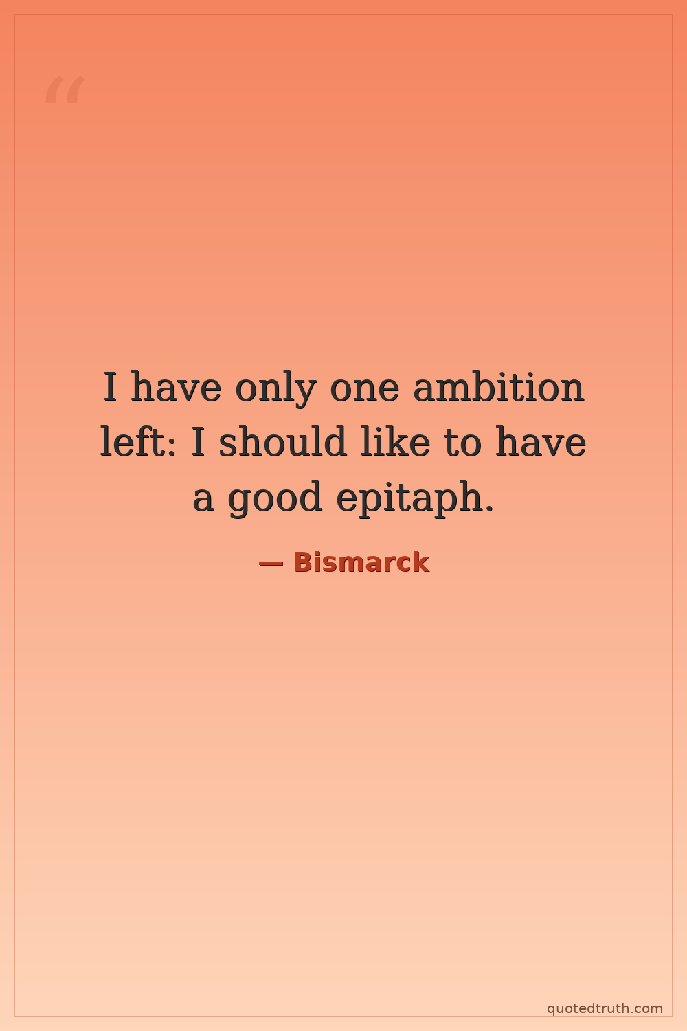 I have only one ambition left: I should like to have a good epitaph.