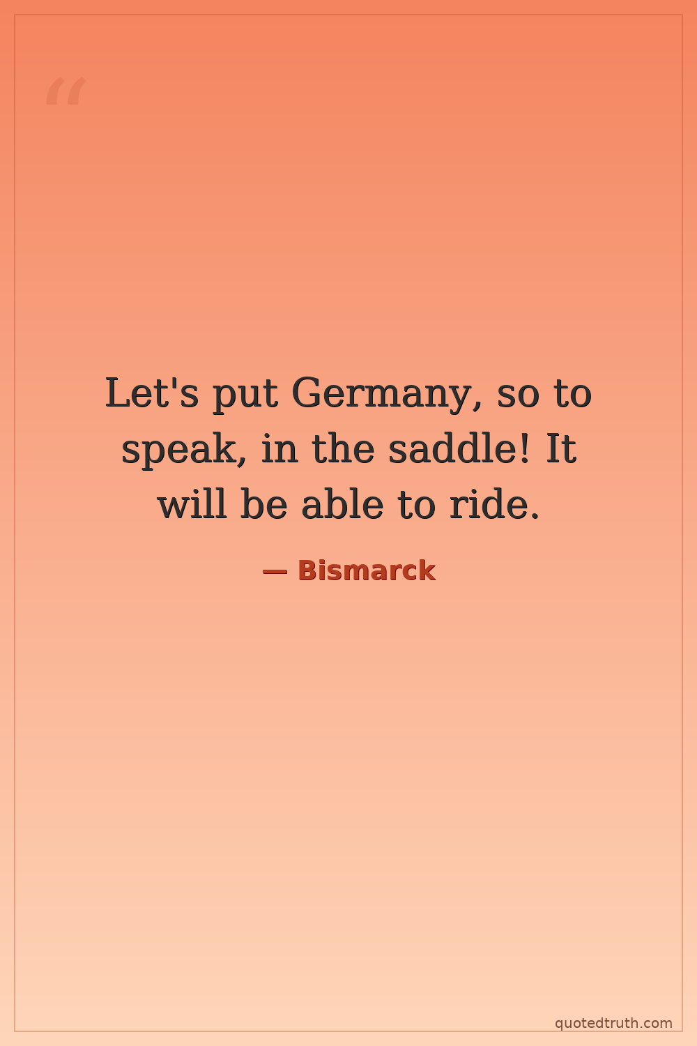Let's put Germany, so to speak, in the saddle! It will be able to ride.