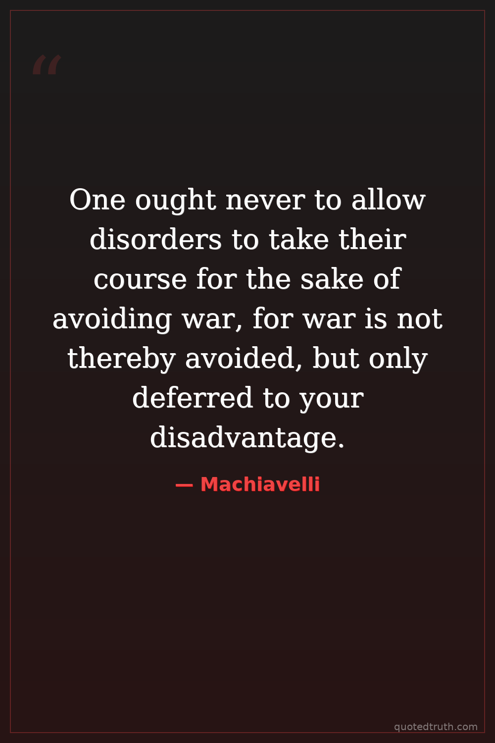 One ought never to allow disorders to take their course for the sake of avoiding war, for war is not thereby avoided, but only deferred to your disadvantage.