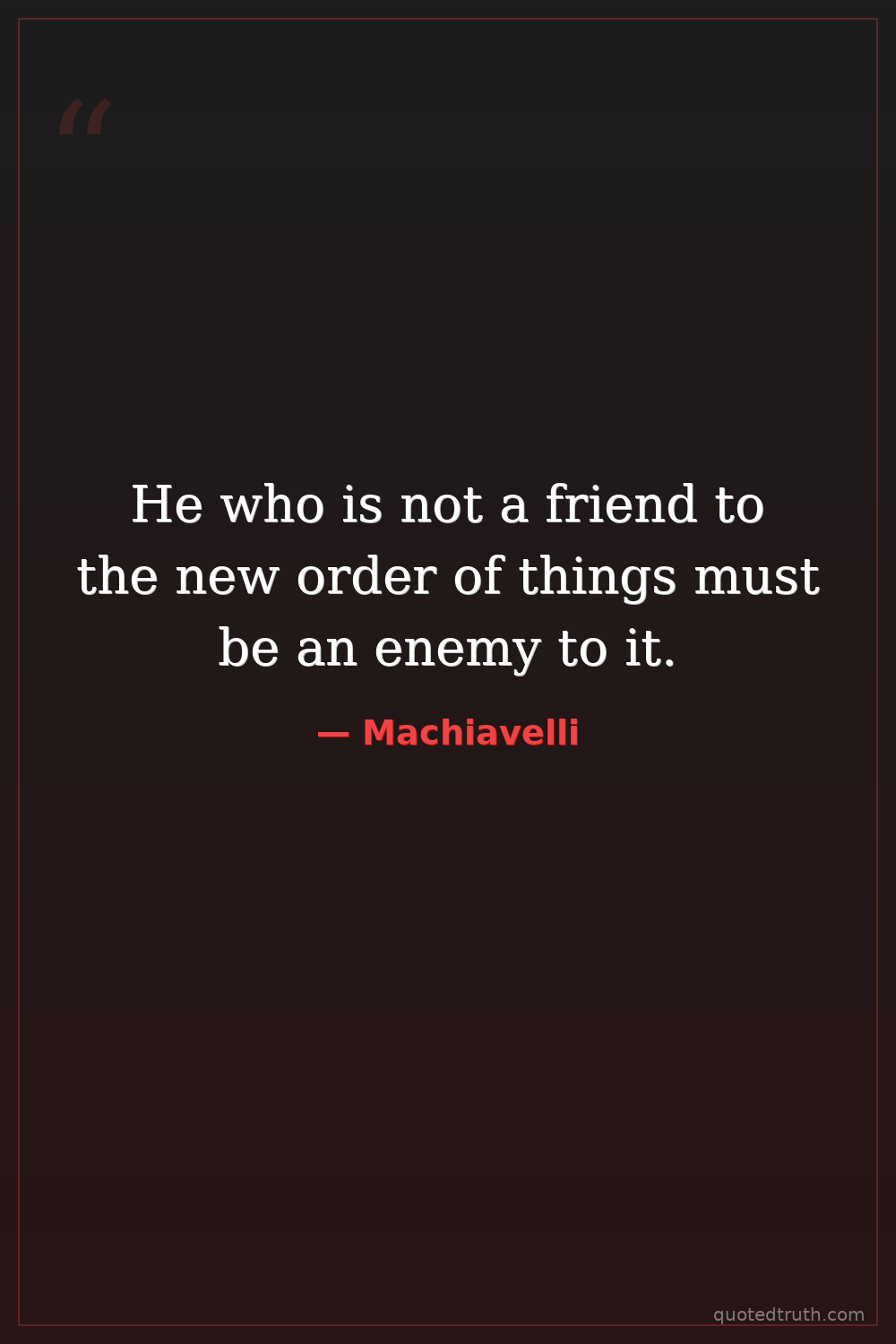 "Hence it is to be remarked that, in seizing a state, the usurper ought to arrange to commit all his cruelties at once, so as not to have to repeat them every day, and thus able to secure men without f…"