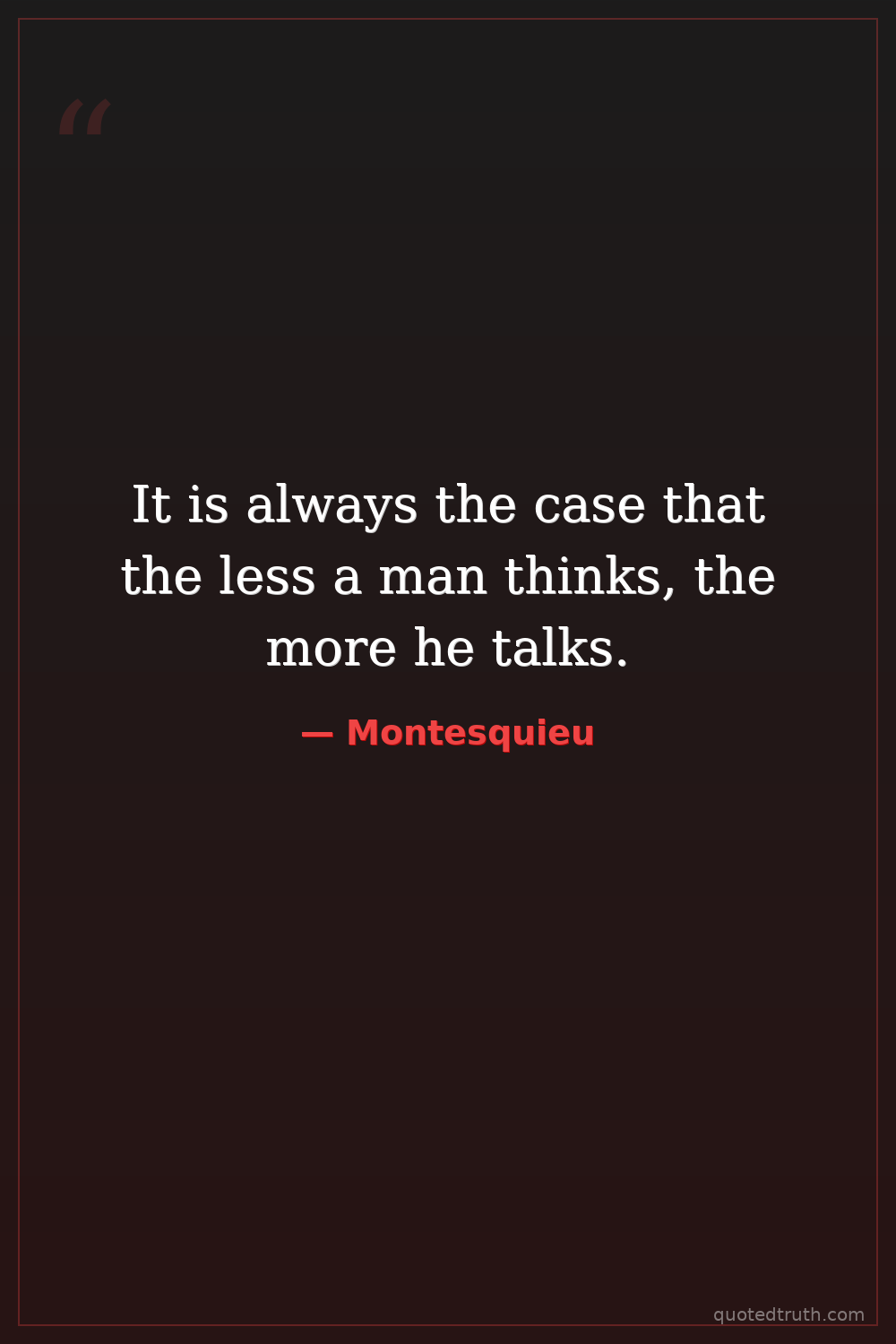 It is always the case that the less a man thinks, the more he talks.