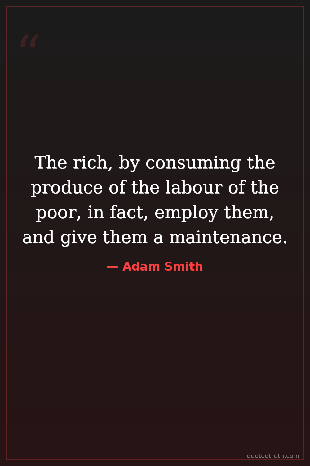 The rich, by consuming the produce of the labour of the poor, in fact, employ them, and give them a maintenance.