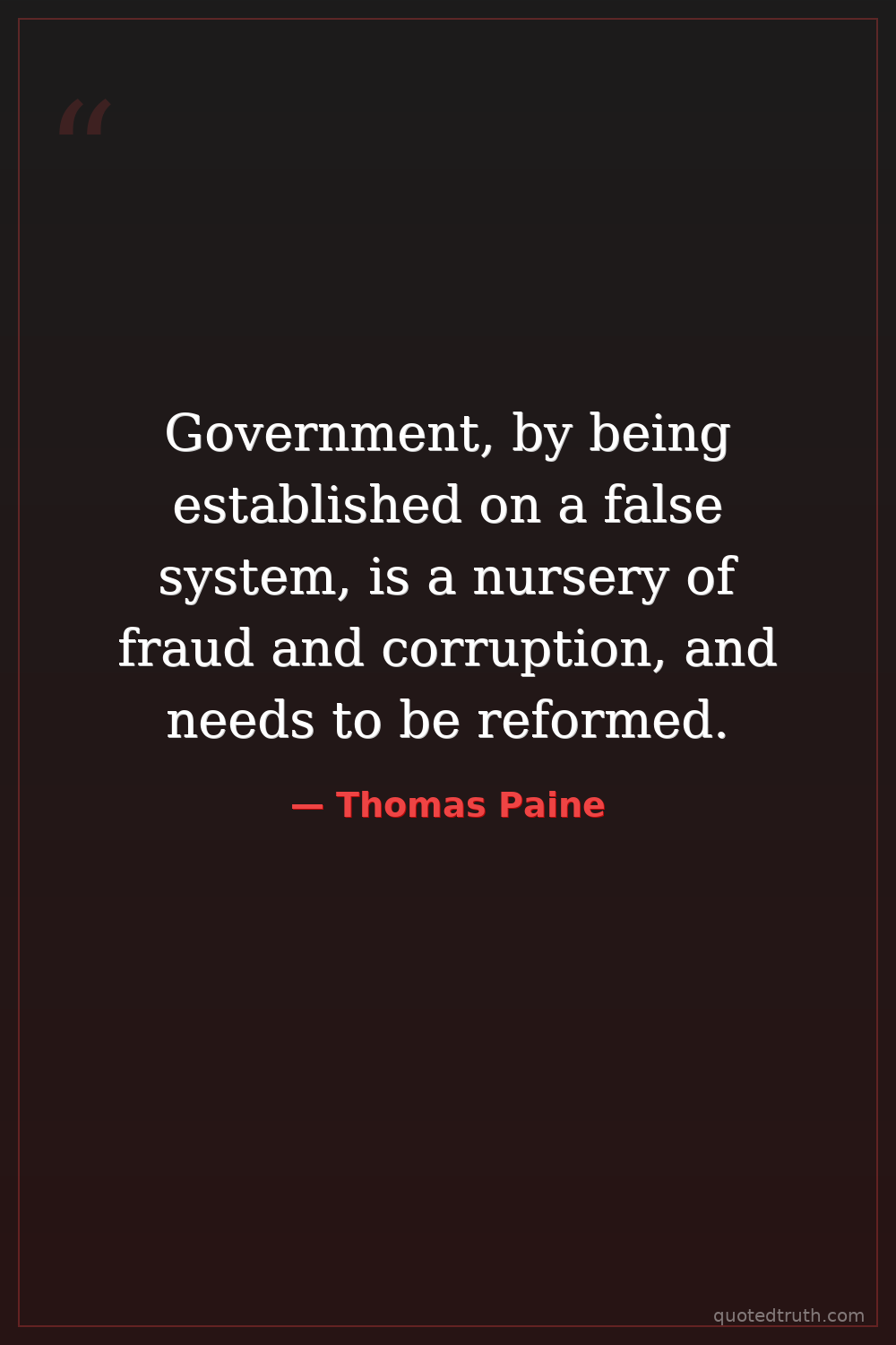Government, by being established on a false system, is a nursery of fraud and corruption, and needs to be reformed.