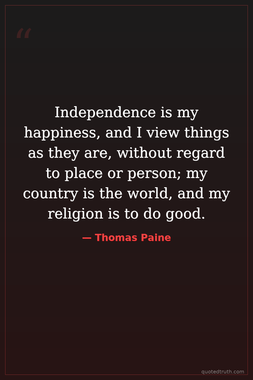 Independence is my happiness, and I view things as they are, without regard to place or person; my country is the world, and my religion is to do good.