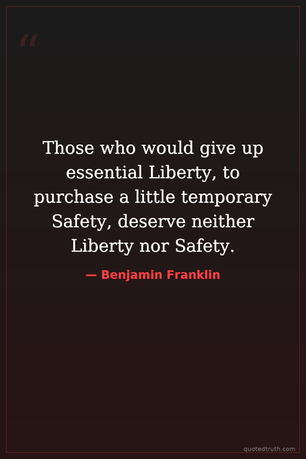 Those who would give up essential Liberty, to purchase a little temporary Safety, deserve neither Liberty nor Safety.