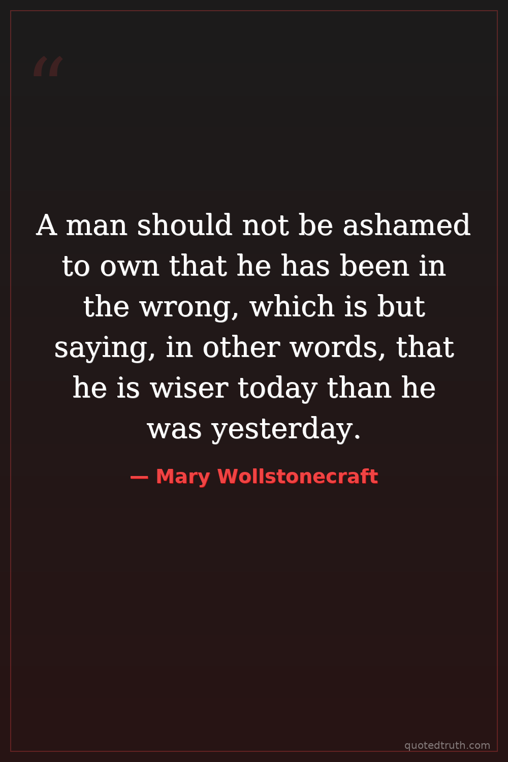 A man should not be ashamed to own that he has been in the wrong, which is but saying, in other words, that he is wiser today than he was yesterday.