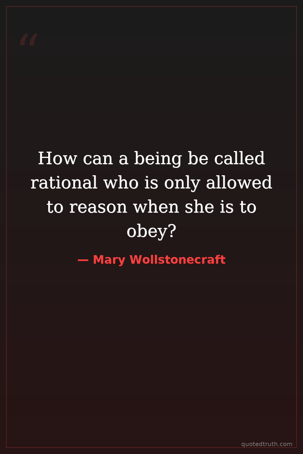 Controversial"It is time to effect a revolution in female manners—time to restore to them their lost dignity."
