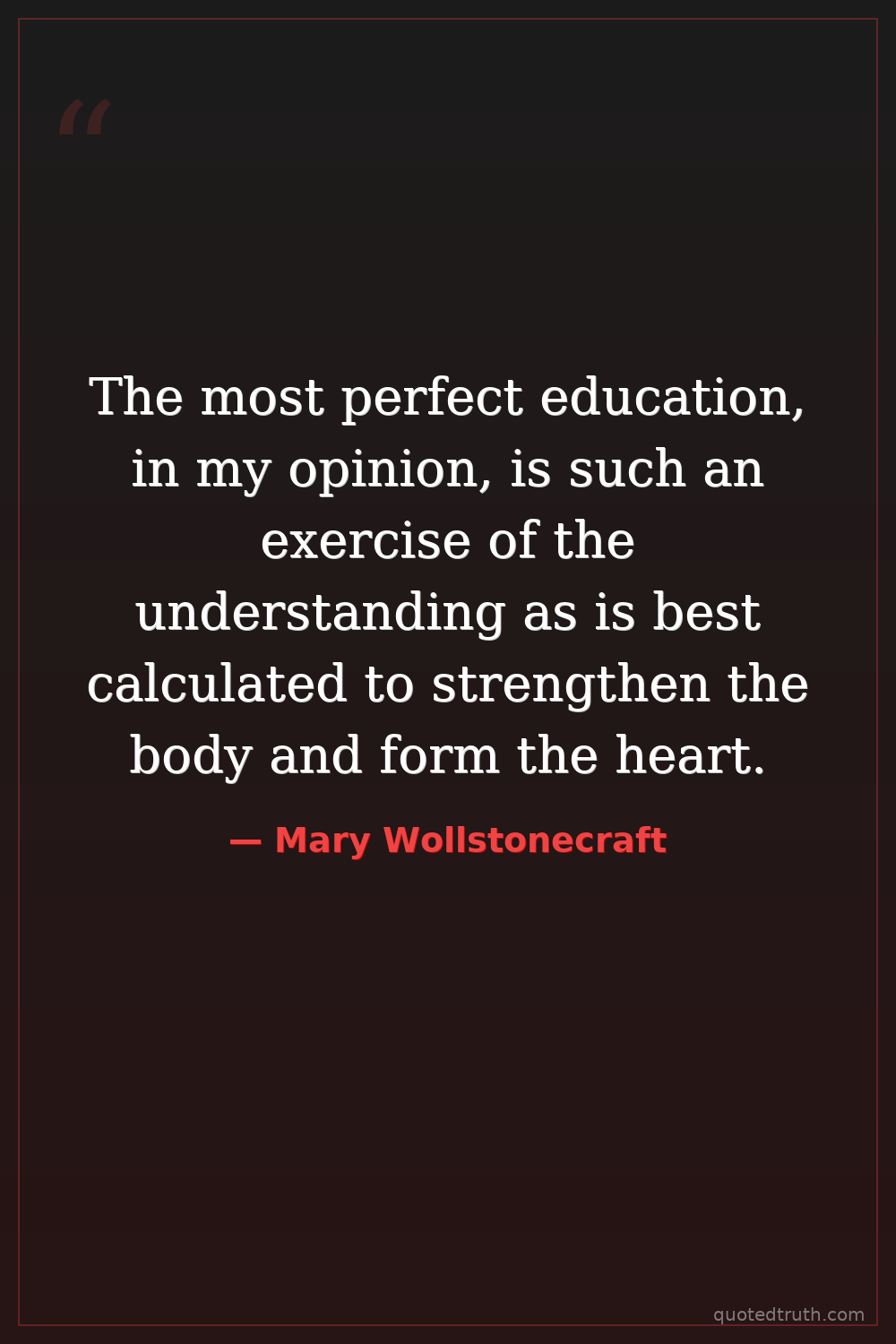 The most perfect education, in my opinion, is such an exercise of the understanding as is best calculated to strengthen the body and form the heart.