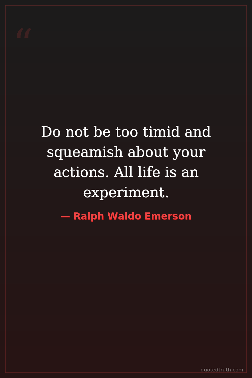 Do not be too timid and squeamish about your actions. All life is an experiment.