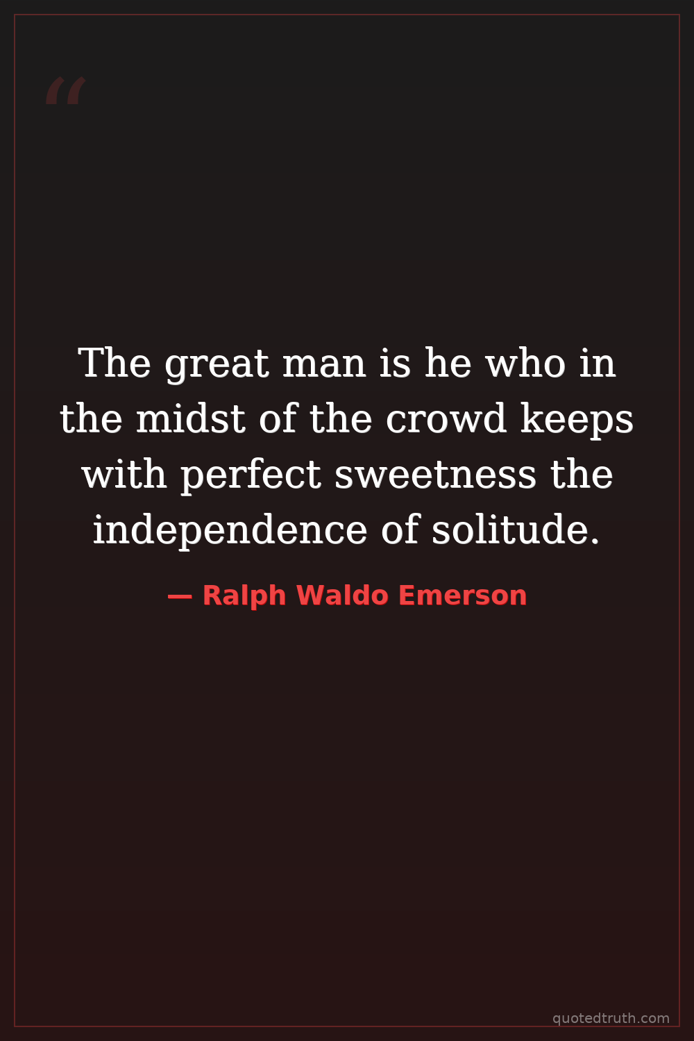 The great man is he who in the midst of the crowd keeps with perfect sweetness the independence of solitude.