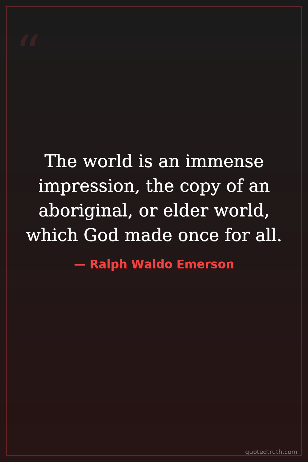 The world is an immense impression, the copy of an aboriginal, or elder world, which God made once for all.
