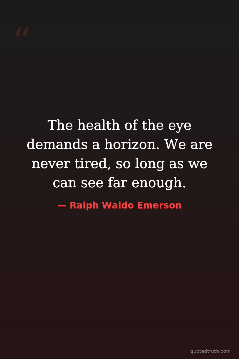 The health of the eye demands a horizon. We are never tired, so long as we can see far enough.