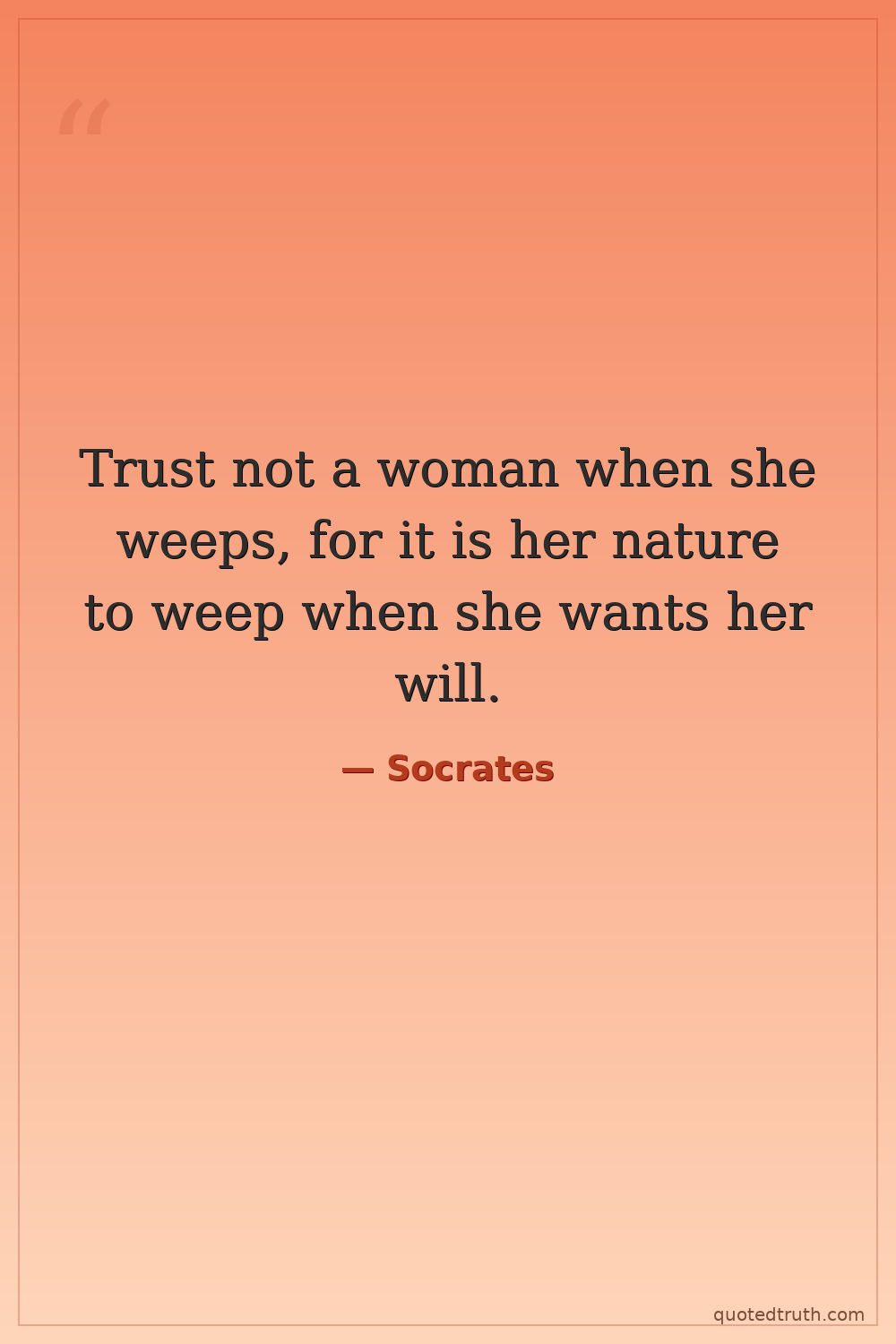 Trust not a woman when she weeps, for it is her nature to weep when she wants her will.