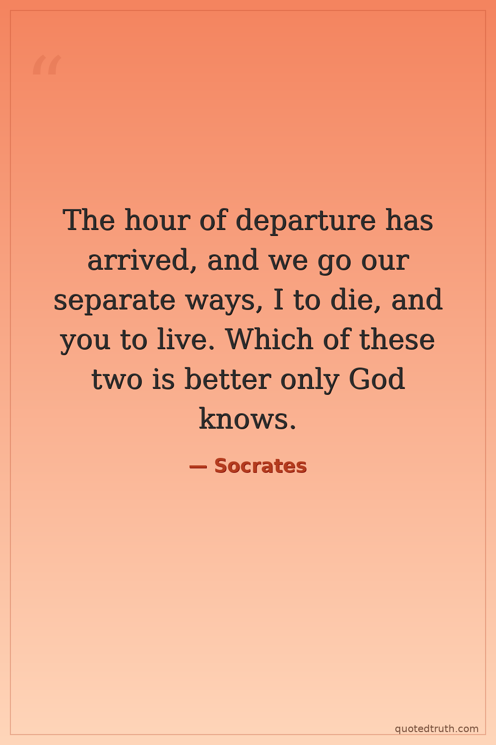 The hour of departure has arrived, and we go our separate ways, I to die, and you to live. Which of these two is better only God knows.