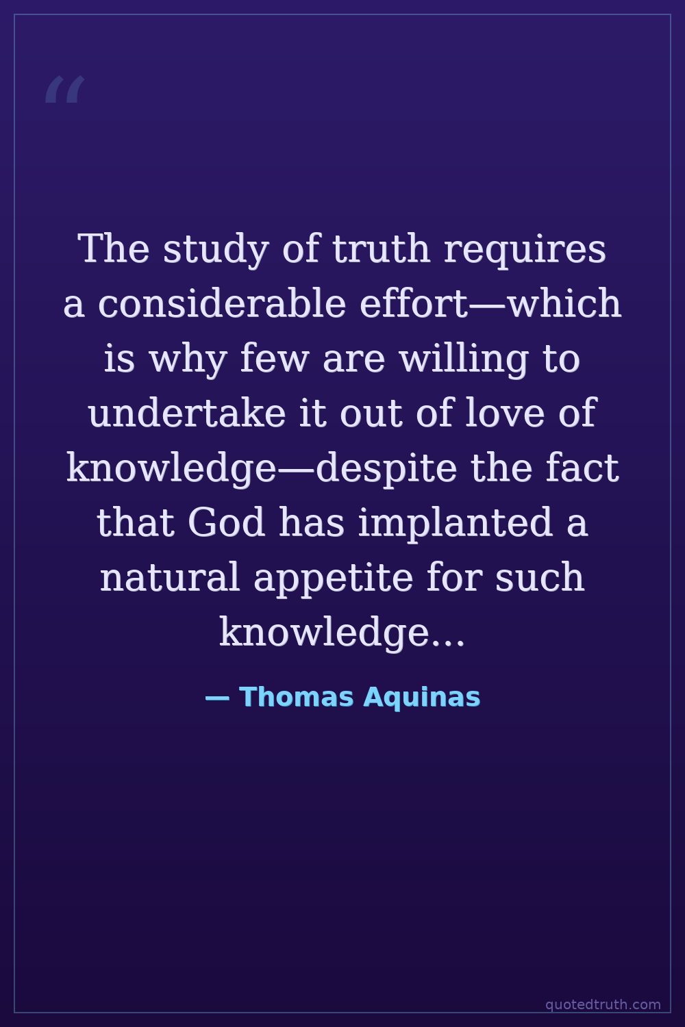 The study of truth requires a considerable effort—which is why few are willing to undertake it out of love of knowledge—despite the fact that God has implanted a natural appetite for such knowledge in the minds of men.