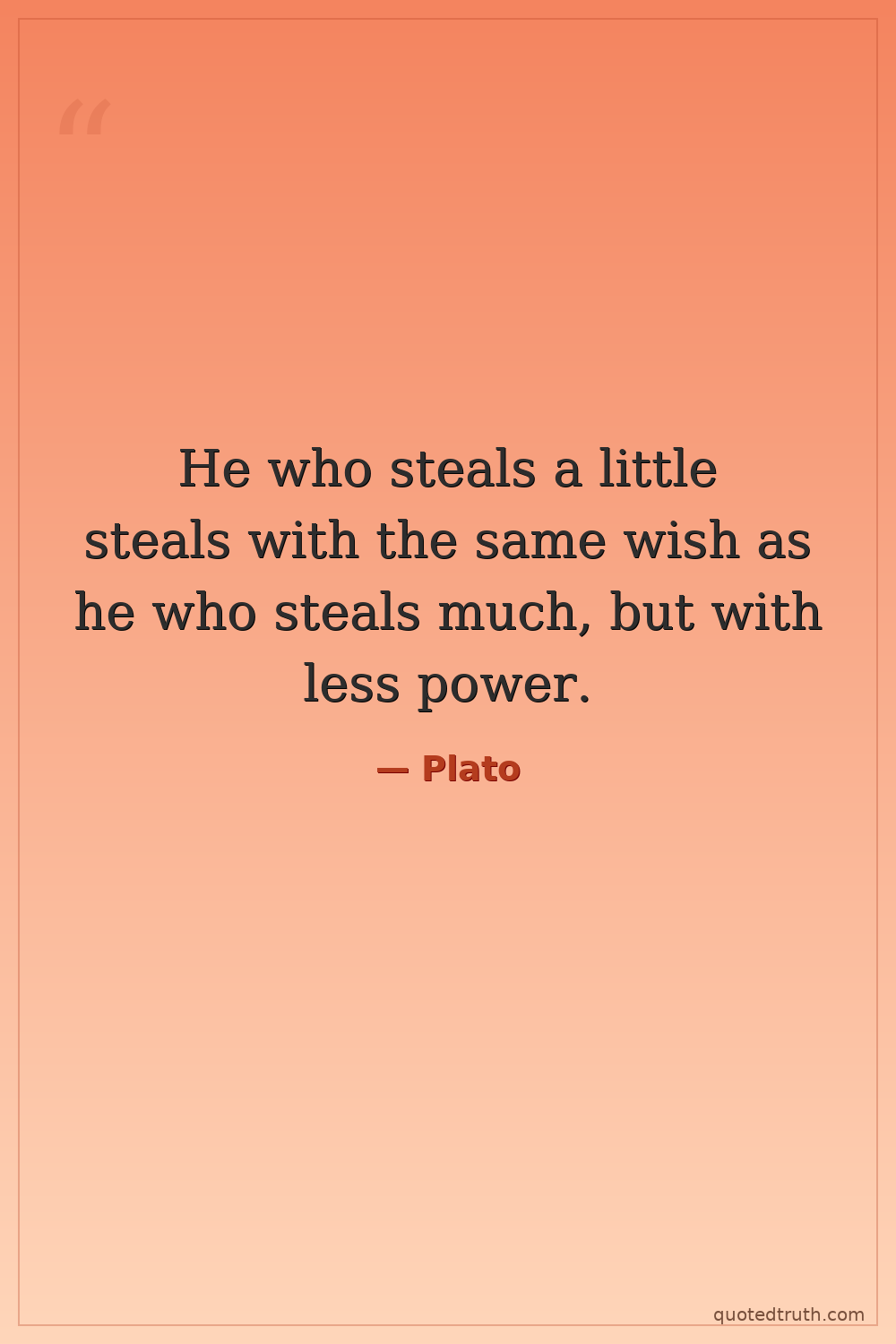 He who steals a little steals with the same wish as he who steals much, but with less power.