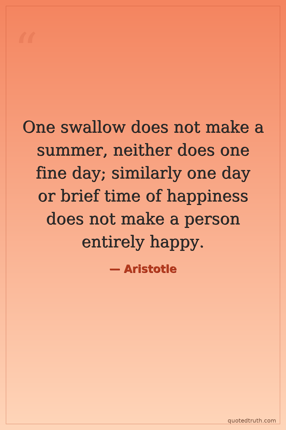 One swallow does not make a summer, neither does one fine day; similarly one day or brief time of happiness does not make a person entirely happy.