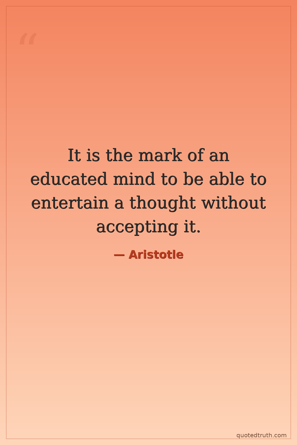 It is the mark of an educated mind to be able to entertain a thought without accepting it.