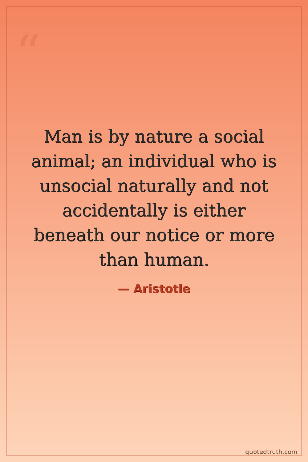 Man is by nature a social animal; an individual who is unsocial naturally and not accidentally is either beneath our notice or more than human.