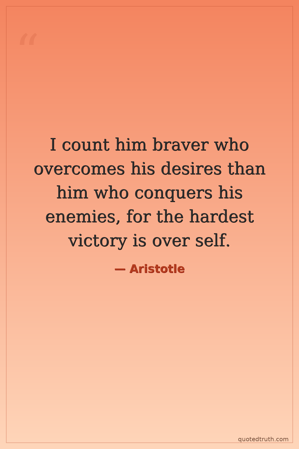 I count him braver who overcomes his desires than him who conquers his enemies, for the hardest victory is over self.