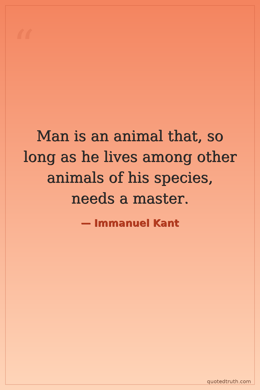 Man is an animal that, so long as he lives among other animals of his species, needs a master.