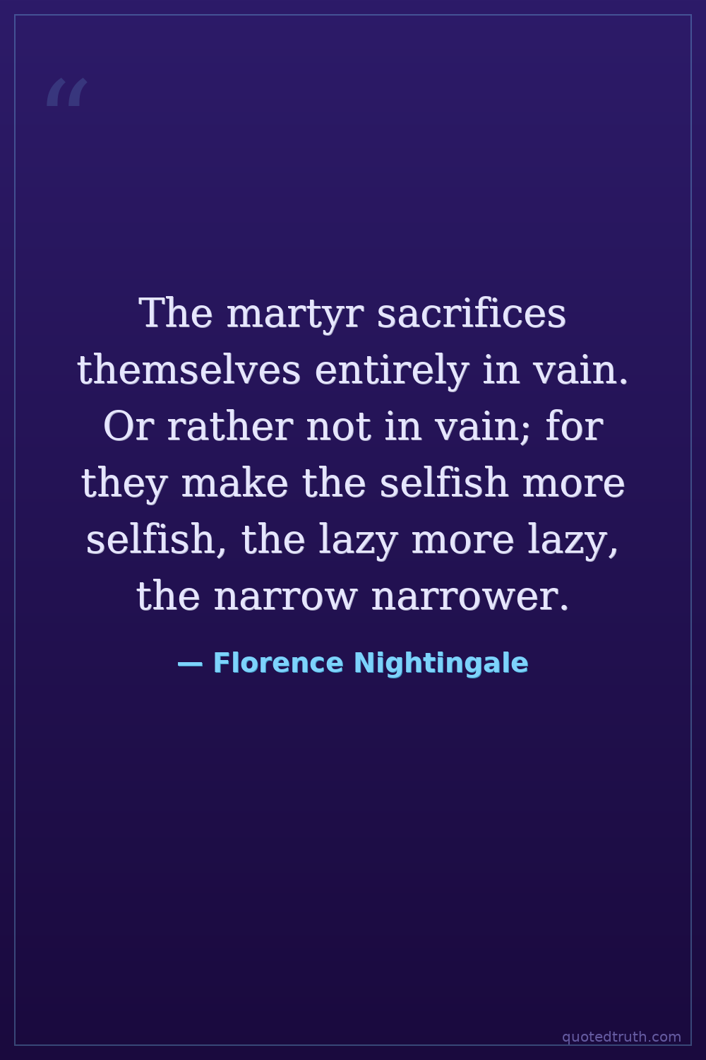 The martyr sacrifices themselves entirely in vain. Or rather not in vain; for they make the selfish more selfish, the lazy more lazy, the narrow narrower.
