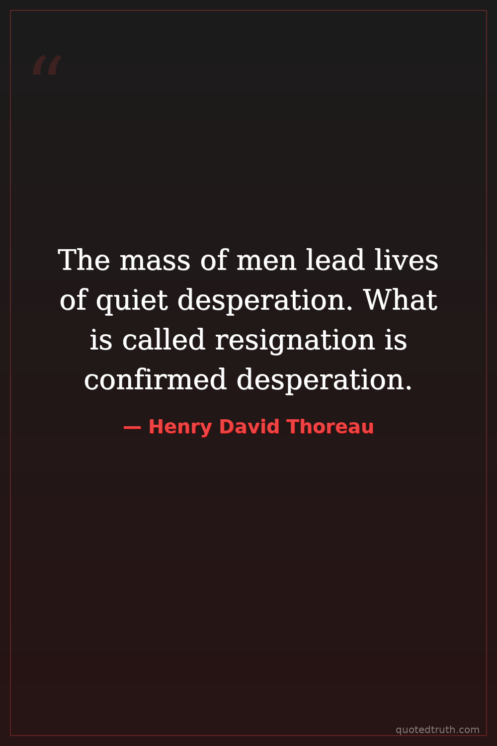 The mass of men lead lives of quiet desperation. What is called resignation is confirmed desperation.
