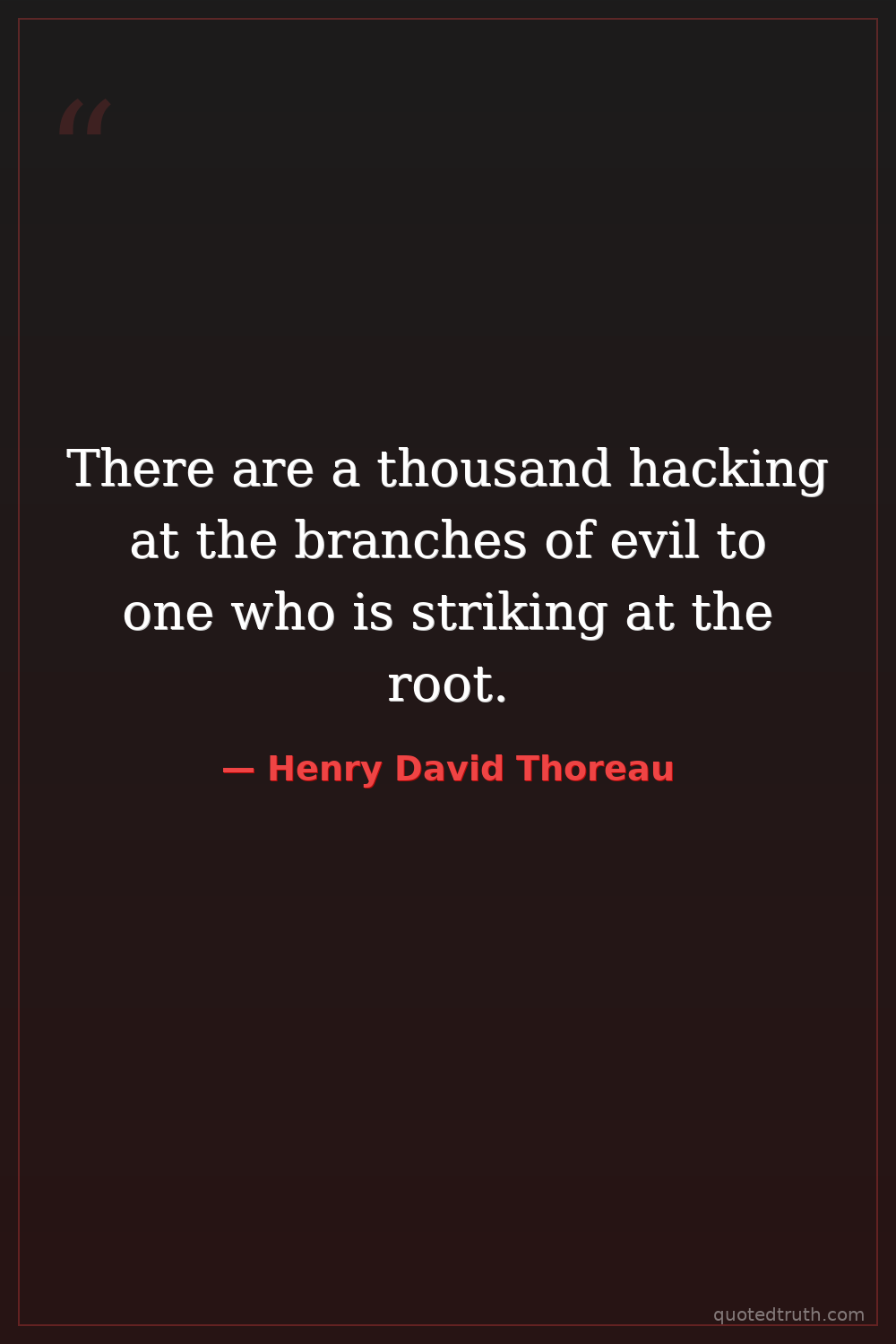 There are a thousand hacking at the branches of evil to one who is striking at the root.
