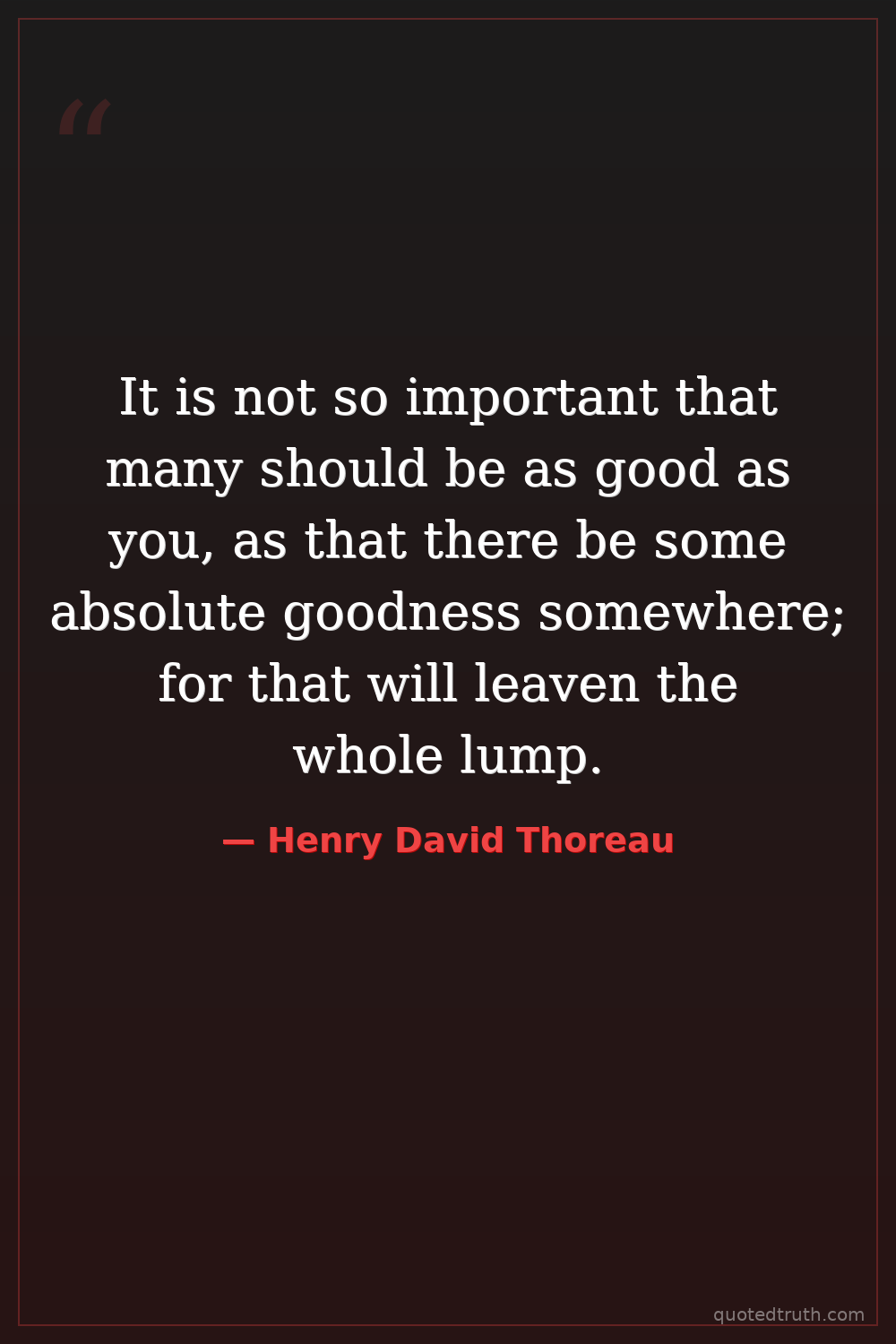 It is not so important that many should be as good as you, as that there be some absolute goodness somewhere; for that will leaven the whole lump.
