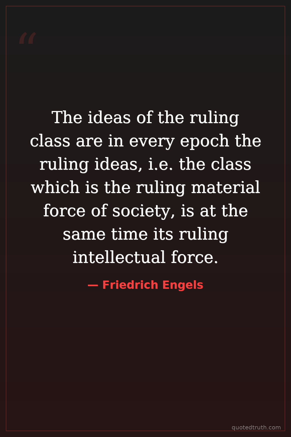 The ideas of the ruling class are in every epoch the ruling ideas, i.e. the class which is the ruling material force of society, is at the same time its ruling intellectual force.