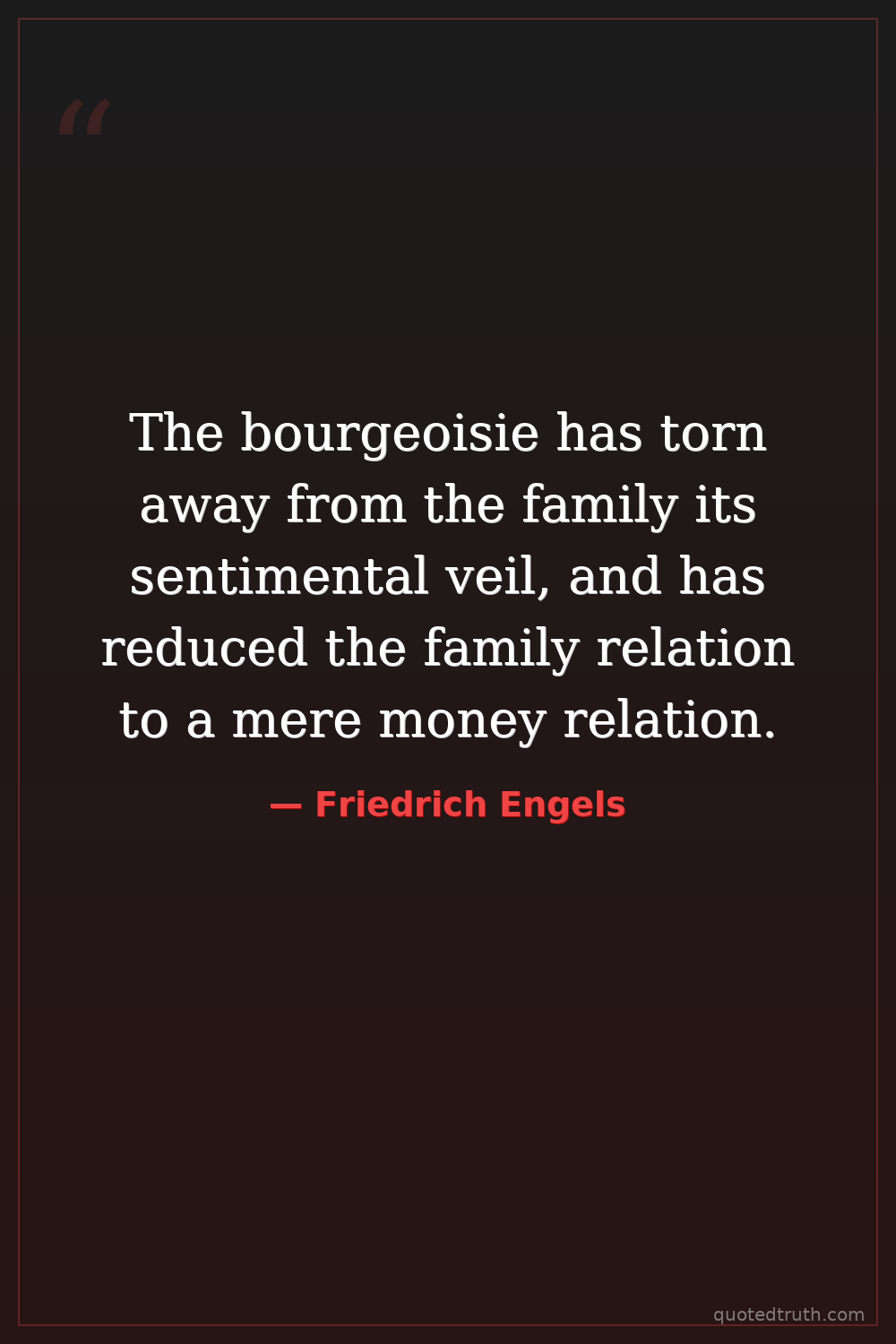 The bourgeoisie has torn away from the family its sentimental veil, and has reduced the family relation to a mere money relation.