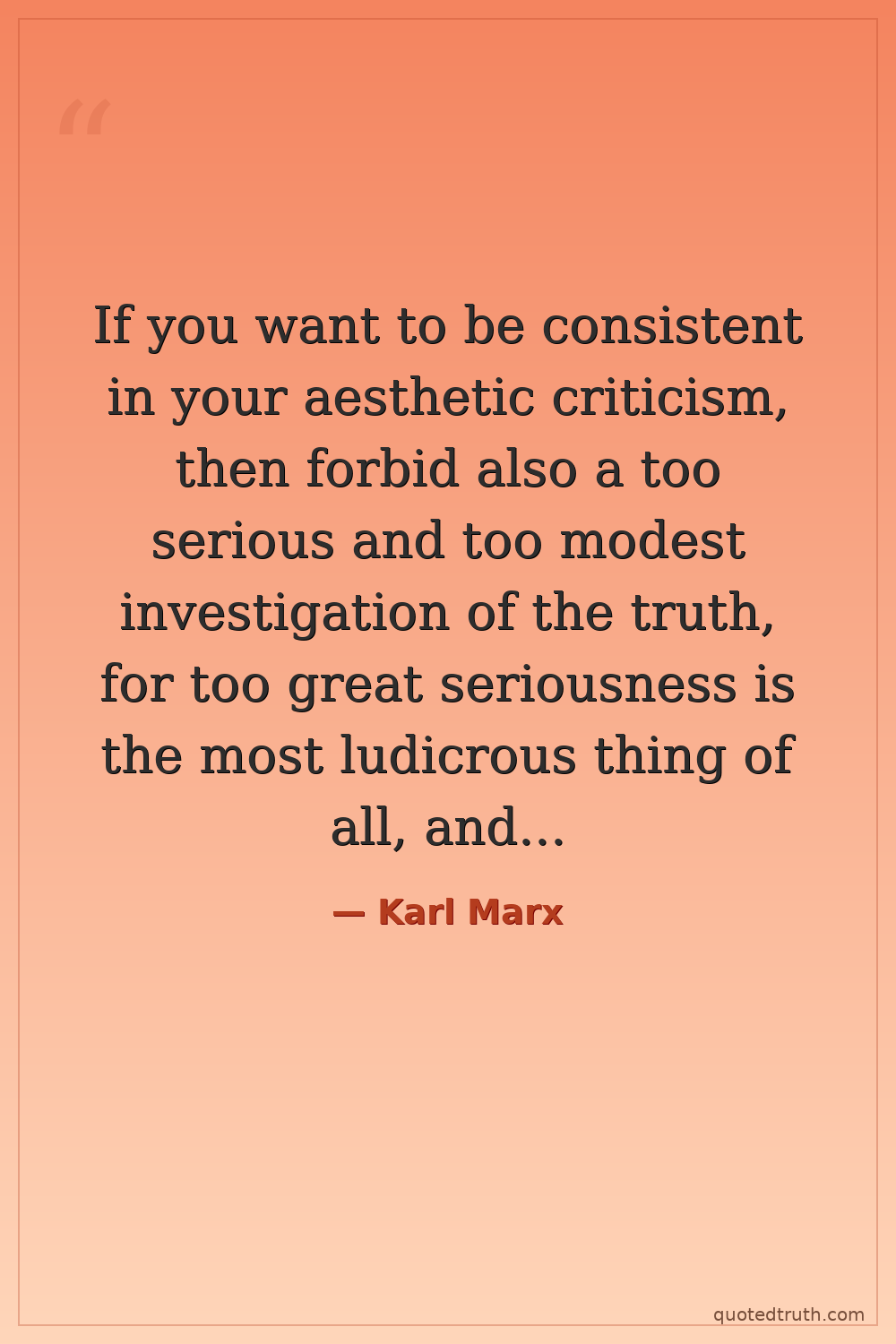 If you want to be consistent in your aesthetic criticism, then forbid also a too serious and too modest investigation of the truth, for too great seriousness is the most ludicrous thing of all, and too great modesty is the bitterest irony.