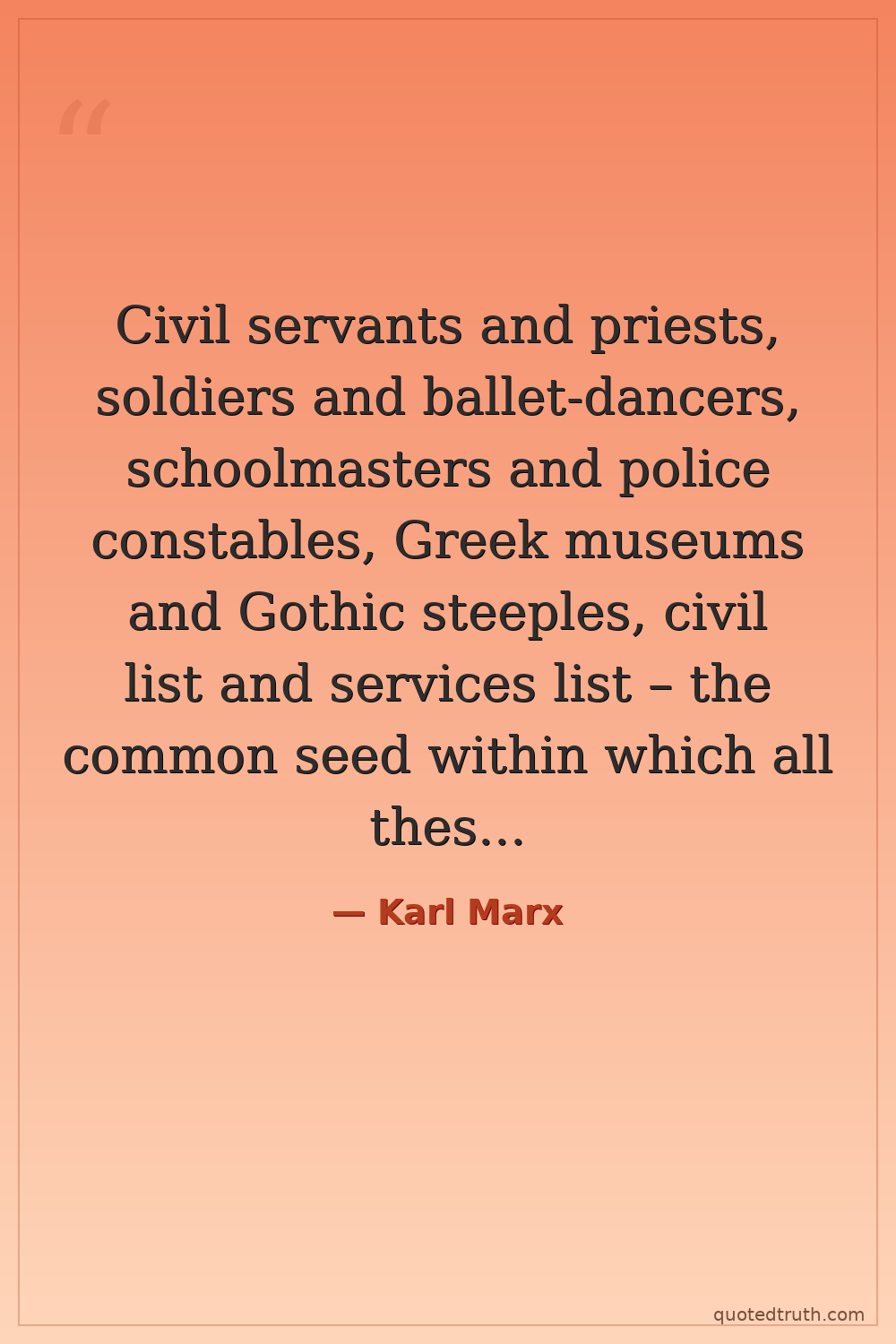 Civil servants and priests, soldiers and ballet-dancers, schoolmasters and police constables, Greek museums and Gothic steeples, civil list and services list – the common seed within which all these fabulous beings slumber in embryo is taxation.