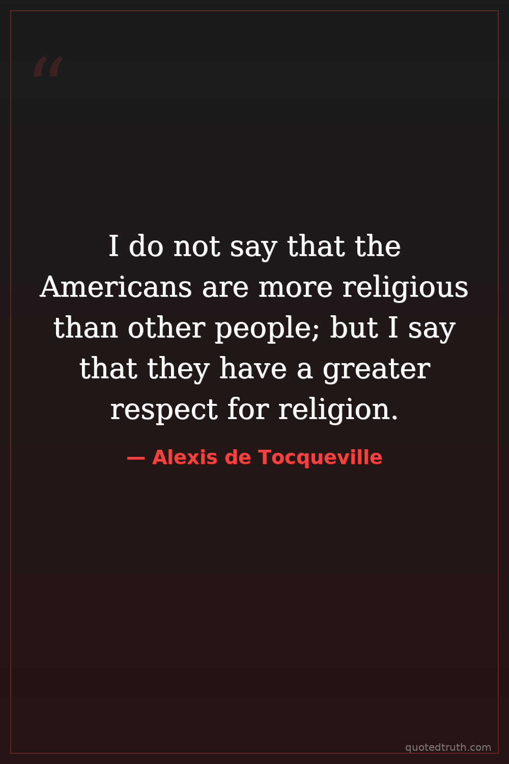 I do not say that the Americans are more religious than other people; but I say that they have a greater respect for religion.