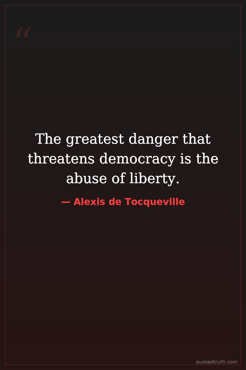 The greatest danger that threatens democracy is the abuse of liberty.