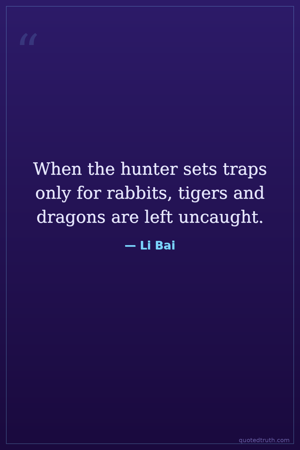 When the hunter sets traps only for rabbits, tigers and dragons are left uncaught.