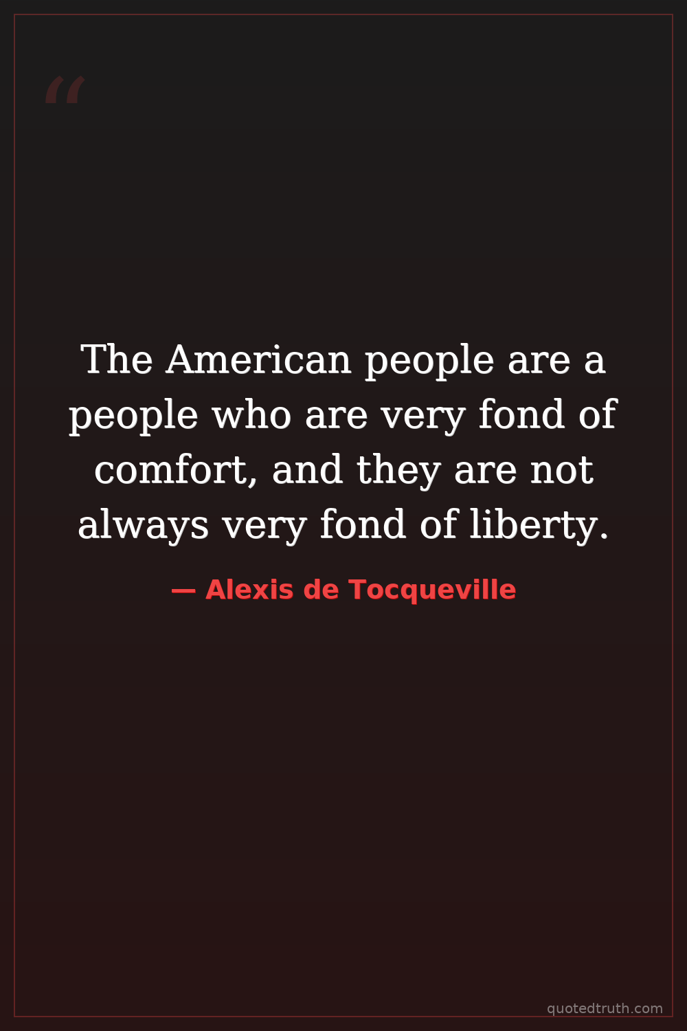 The American people are a people who are very fond of comfort, and they are not always very fond of liberty.