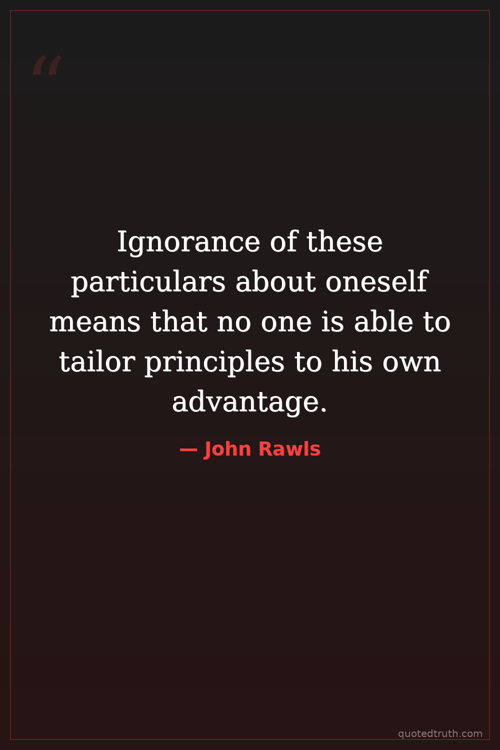 Ignorance of these particulars about oneself means that no one is able to tailor principles to his own advantage.