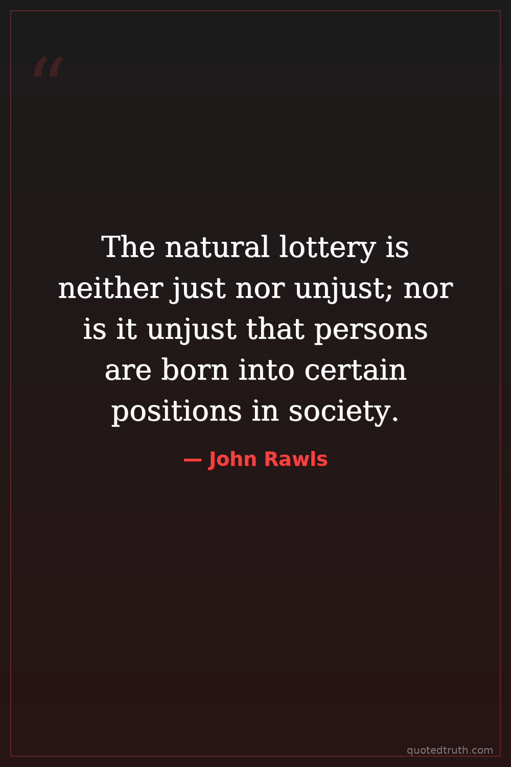 The natural lottery is neither just nor unjust; nor is it unjust that persons are born into certain positions in society.