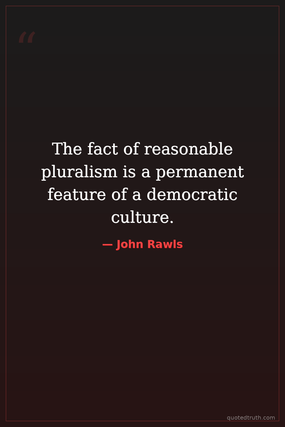 The fact of reasonable pluralism is a permanent feature of a democratic culture.