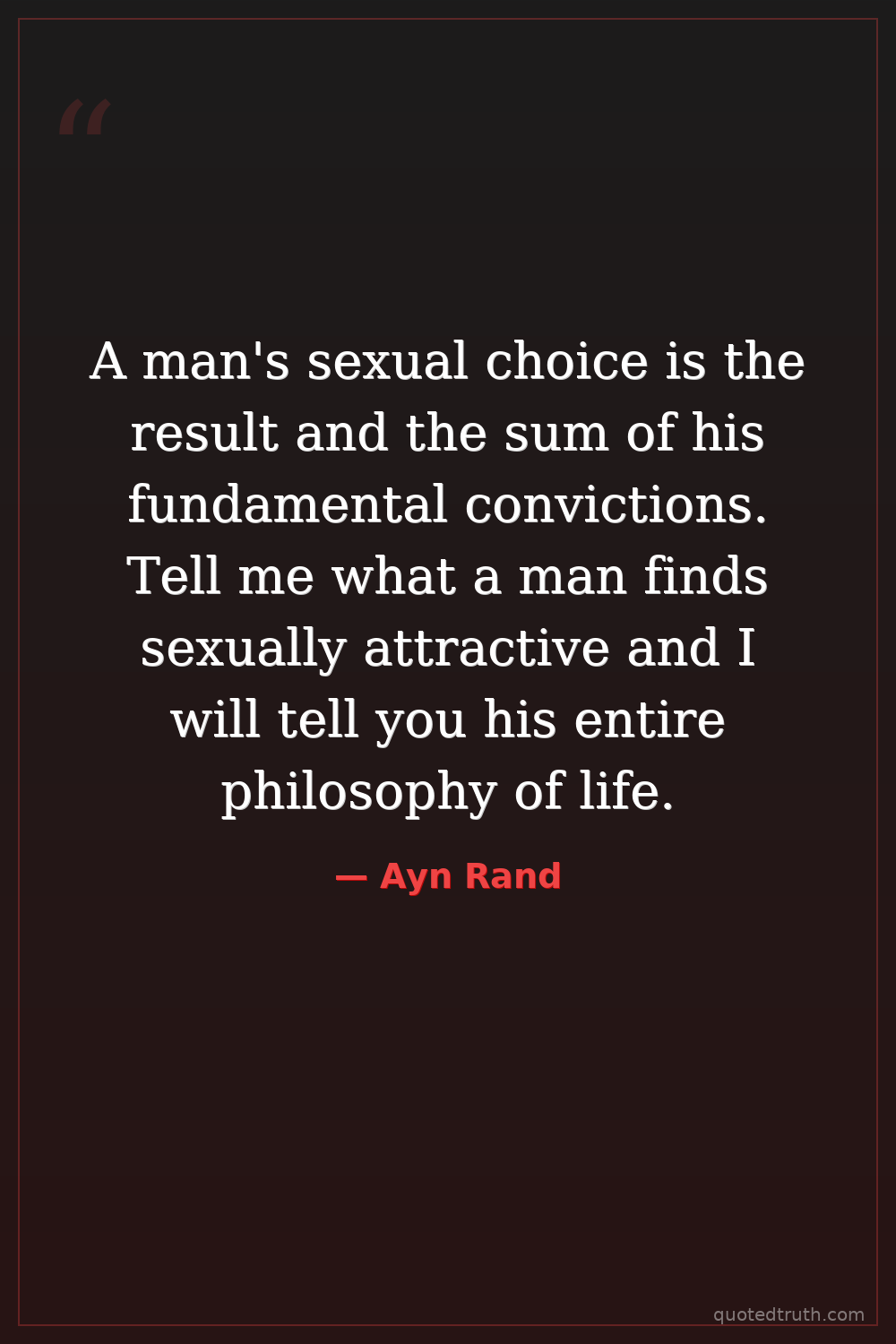 A man's sexual choice is the result and the sum of his fundamental convictions. Tell me what a man finds sexually attractive and I will tell you his entire philosophy of life.