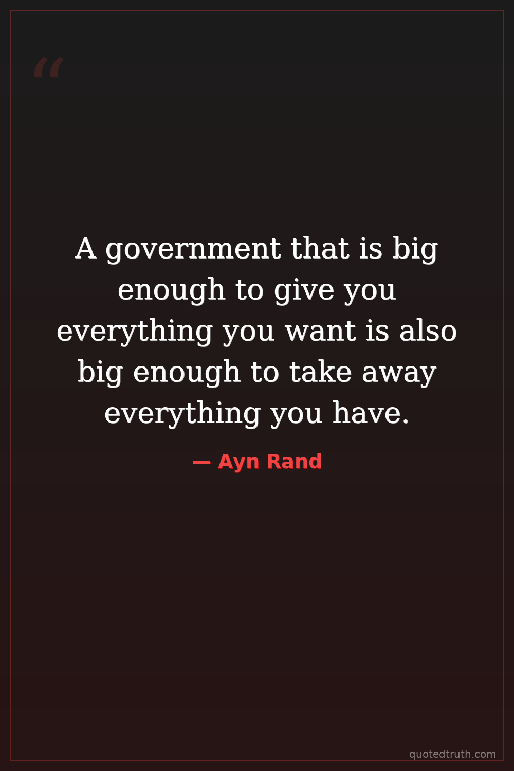 A government that is big enough to give you everything you want is also big enough to take away everything you have.