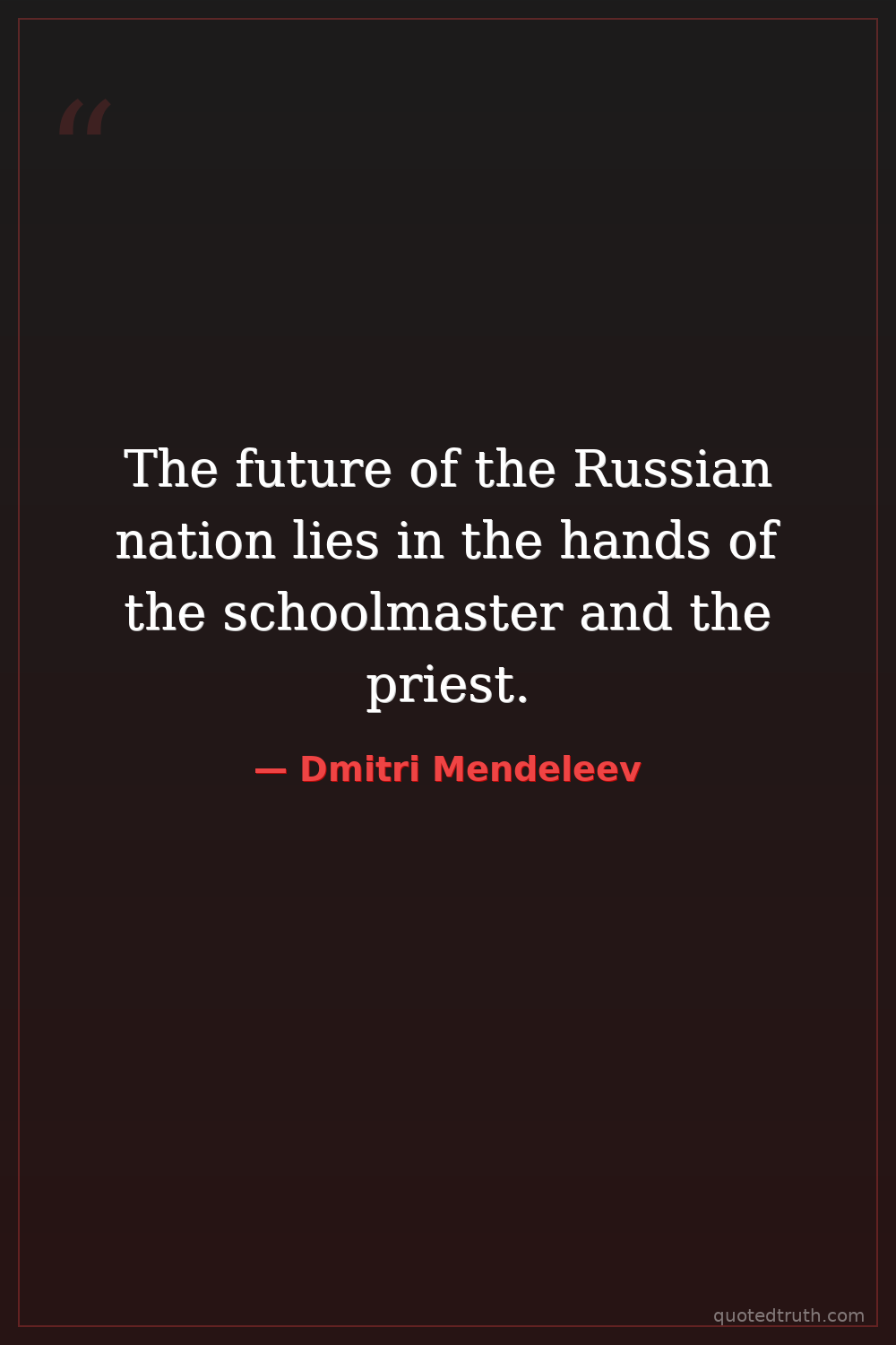 The future of the Russian nation lies in the hands of the schoolmaster and the priest.