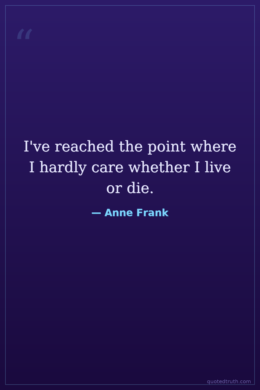 I've reached the point where I hardly care whether I live or die.
