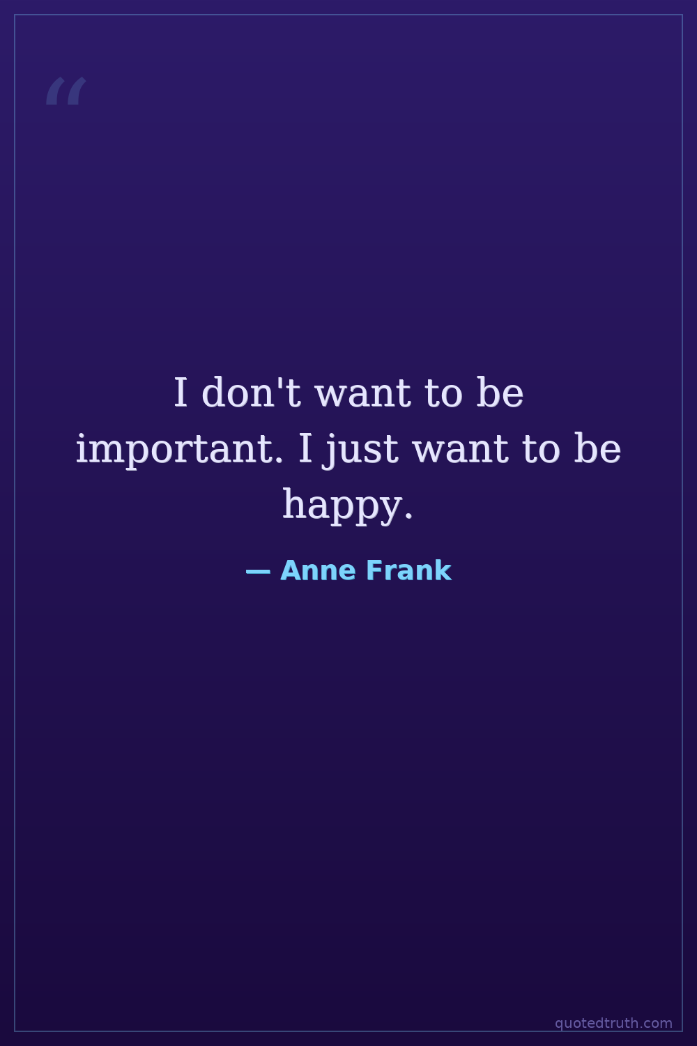 I don't want to be important. I just want to be happy.