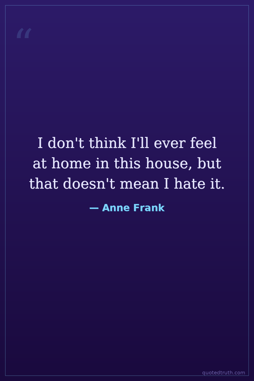 I don't think I'll ever feel at home in this house, but that doesn't mean I hate it.
